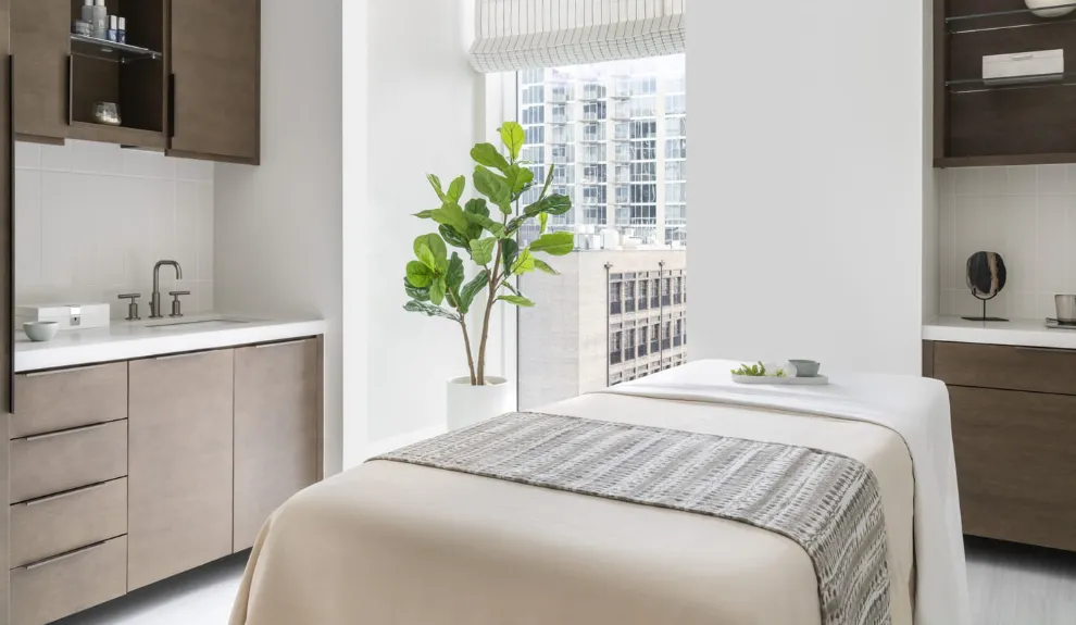 The Four Seasons Hotel Nashville is a Forbes Travel Guide Four-Star luxury hotel situated in the heart of downtown Nashville's vibrant SoBro neighborhood. Occupying the lower 14 floors of a striking 40-story tower, the hotel offers 235 guest rooms and suites, each designed with floor-to-ceiling windows that provide sweeping views of the Cumberland River or the city skyline. The interiors blend industrial-chic elements with mid-century modern accents, featuring marble bathrooms, soaking tubs, and Tivoli Bluetooth speakers.