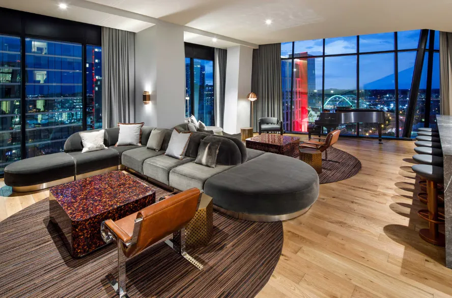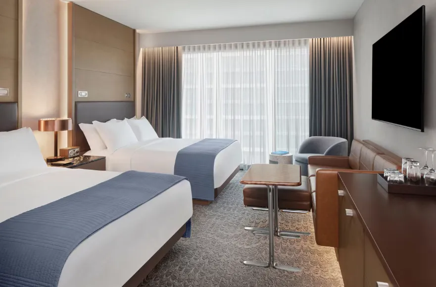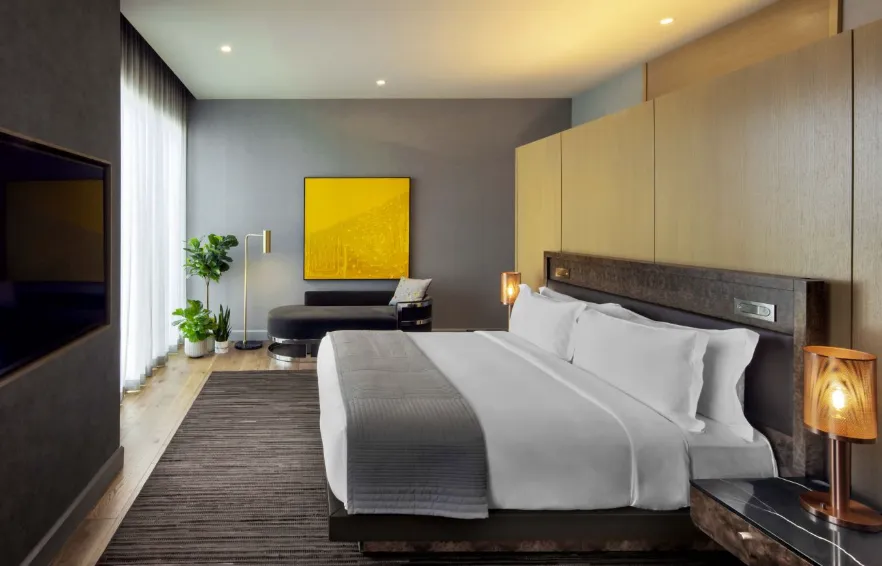 The atmosphere at The Joseph Nashville is one of understated luxury, where modern design meets artistic soul. Warm tones of leather, wood, and marble are paired with sleek architectural lines to create spaces that feel both sophisticated and inviting. Over 1,100 pieces of curated artwork—ranging from contemporary pieces to works by Tennessee artists—are woven throughout the hotel, giving it the feeling of a living gallery. Music City’s creative spirit is subtly echoed in design details, like turntables and vinyl records in select rooms, while public spaces balance elegance with comfort. The result is a refined yet welcoming ambiance that feels cosmopolitan, artful, and distinctly Nashville.
