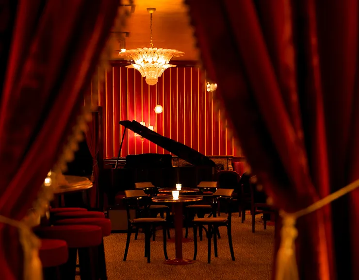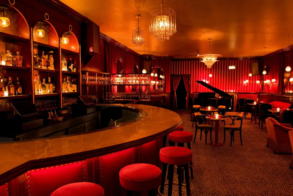 The Nines is an exclusive supper club and piano bar nestled at 9 Great Jones Street, New York, NY 10012, in the heart of NoHo. Known for its intimate ambiance and live music, The Nines offers a refined atmosphere reminiscent of classic European hotel bars. The venue features Murano glass chandeliers, velvet curtains, and a grand piano, creating a luxurious setting for guests. The menu includes upscale bites such as caviar-topped potatoes and a signature club sandwich.