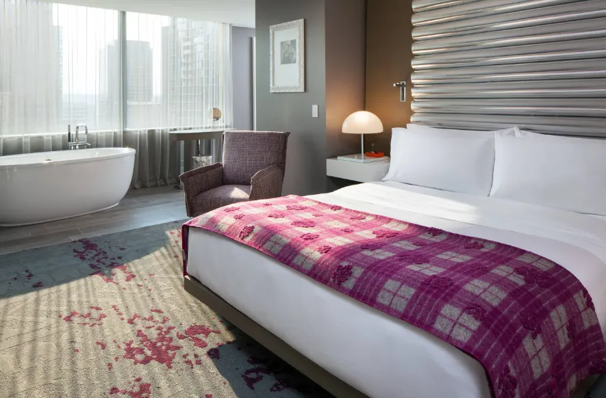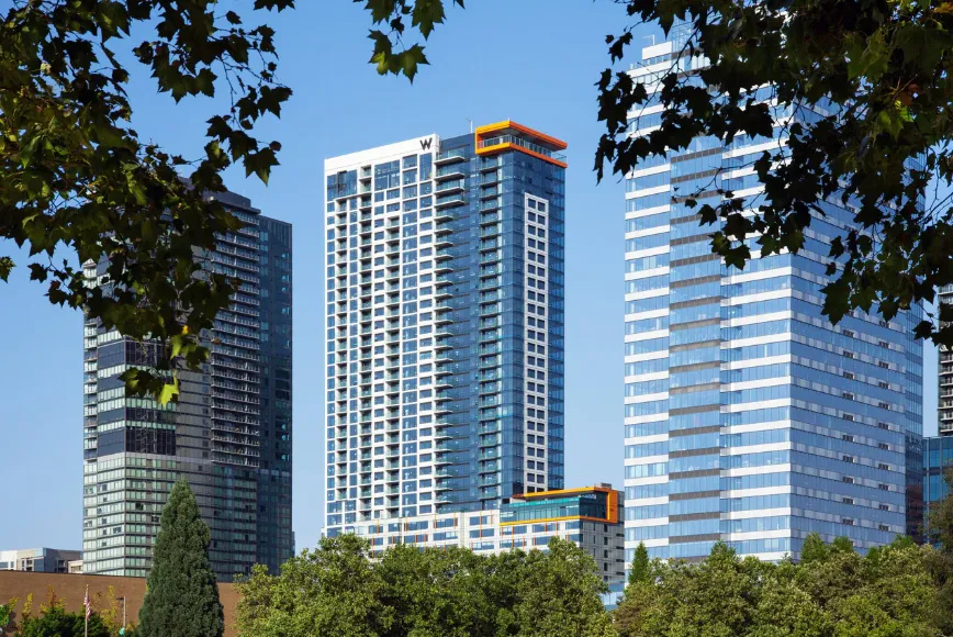 W Bellevue is a chic and vibrant luxury hotel nestled in the heart of downtown Bellevue, Washington. Part of the W Hotels brand, it offers a modern and playful atmosphere, blending bold design with upscale amenities. The hotel's interior features a "deconstructed lake house" theme, combining elements of nature, technology, and nostalgia to create a unique and inviting environment. With 245 guest rooms and suites, each space is thoughtfully designed to provide comfort and style, including features like glass-enclosed showers and window seats.