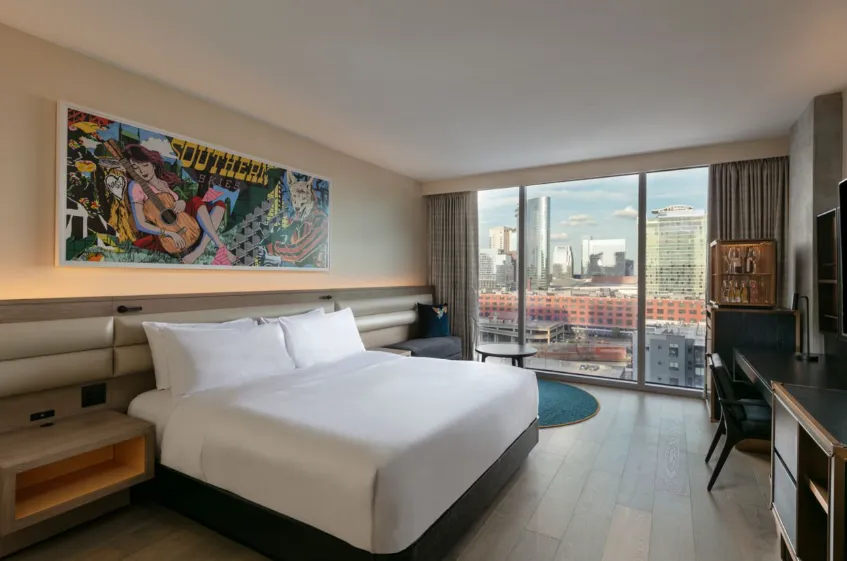 W Nashville is a chic, modern hotel situated in the heart of Nashville's vibrant Gulch neighborhood, offering a blend of luxury and contemporary style. With 346 rooms—including 60 suites—this 14-story hotel boasts Nashville's largest hotel pool area, the expansive WET Deck, complete with luxury cabanas, a yoga lawn, and a poolside bar.