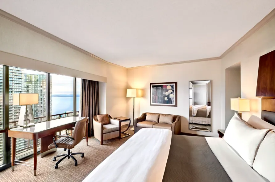 The Westin Seattle is a premier hotel located in the heart of downtown Seattle, offering guests a blend of comfort, style, and convenience. The hotel features two iconic cylindrical towers, providing panoramic views of the city skyline, Puget Sound, and the surrounding mountains.