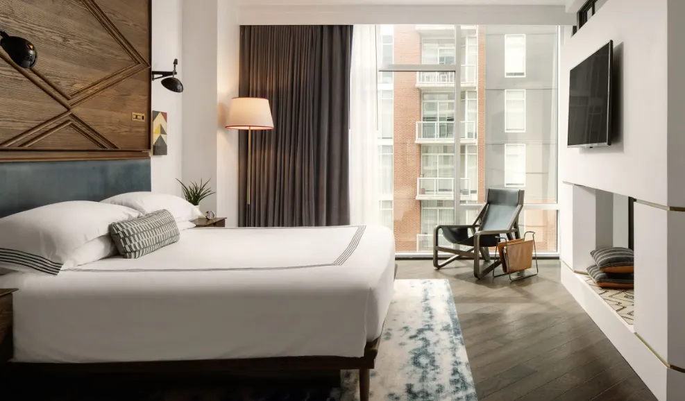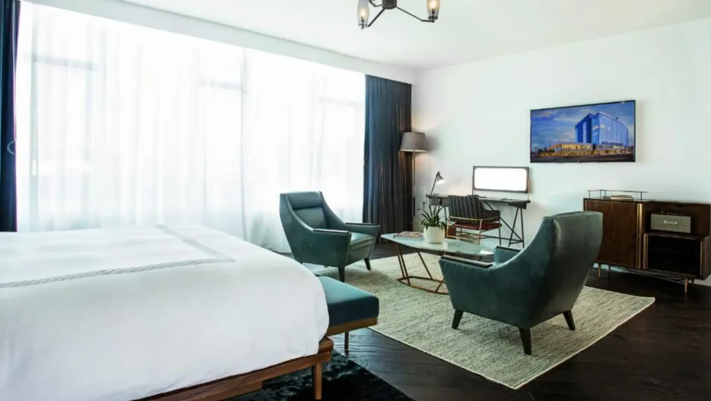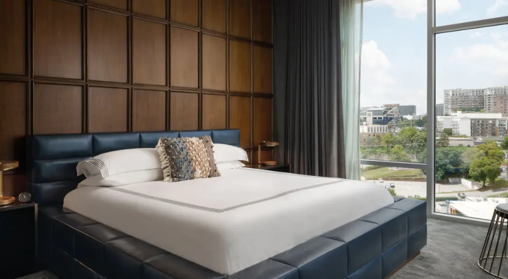 Thompson Nashville is a boutique luxury hotel situated in the vibrant Gulch neighborhood, offering a blend of modern sophistication and Southern charm. Opened in 2016, this 12-story hotel features 224 guest rooms and suites, each designed with mid-century modern aesthetics, floor-to-ceiling windows, and custom artwork reflecting Nashville's rich musical heritage.