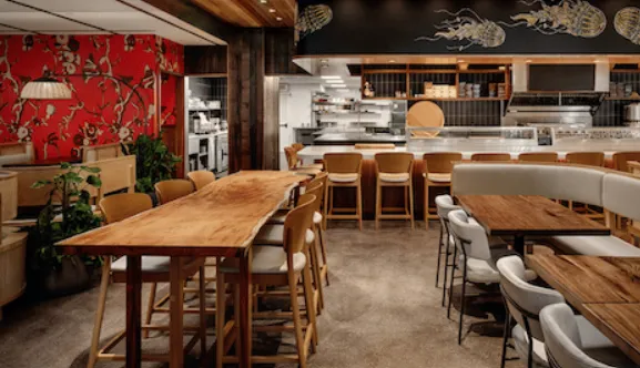 Uchi Houston offers an atmosphere that is both elegant and inviting, blending modern sophistication with a warm, intimate energy. The design features sleek, minimalist lines with rich wood accents, soft lighting, and an open kitchen that allows guests to watch chefs at work, creating a dynamic connection between the dining room and culinary craft. The space is thoughtfully arranged to balance privacy with a sense of communal experience, with a main dining area that feels refined yet comfortable.
