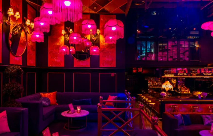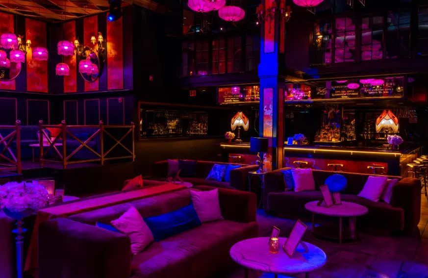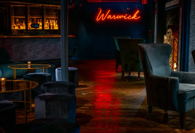 Warwick LA offers a warm, sophisticated atmosphere that blends rustic charm with modern luxury, creating an intimate yet vibrant nightlife setting. The design features exposed brick walls, rich wood accents, plush velvet seating, and moody, ambient lighting that together evoke a sense of refined elegance. The space is thoughtfully arranged to balance social interaction with privacy, offering cozy booths, open lounge areas, and a stylish bar centerpiece. This combination of textures, lighting, and layout gives Warwick LA a distinct identity as both a relaxed lounge and a high‑energy nightlife destination, appealing to those seeking an upscale yet inviting experience.