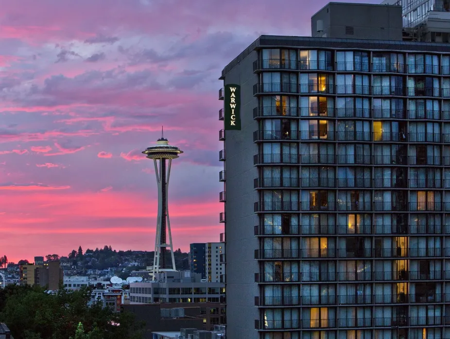 The Warwick Seattle is a boutique hotel nestled in the vibrant Belltown neighborhood, offering a blend of classic elegance and modern comfort. Located just steps from iconic landmarks like the Space Needle, Pike Place Market, and the Seattle waterfront, it provides guests with easy access to the city's top attractions. The hotel features spacious accommodations with floor-to-ceiling windows and Juliet balconies, many offering sweeping views of the Seattle skyline.