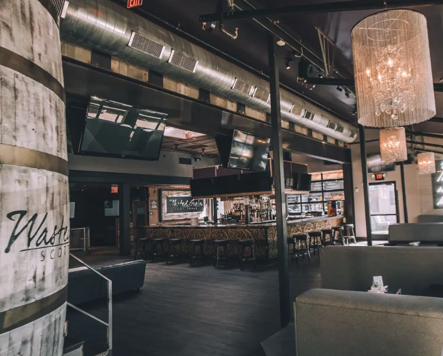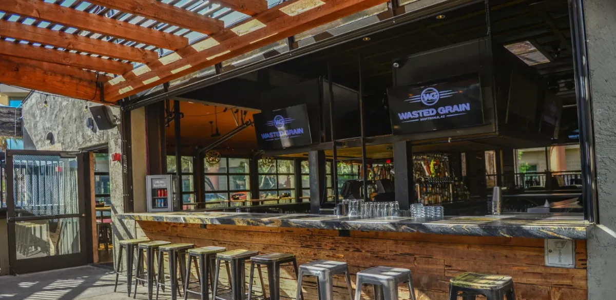 The venue features a spacious 3,000 sq. ft. outdoor patio and the Old Town Ski Lodge on the second floor. Wasted Grain hosts events such as sports watch parties, bar crawls, and food festivals, with VIP table service and fully customizable event packages available for corporate and private events.