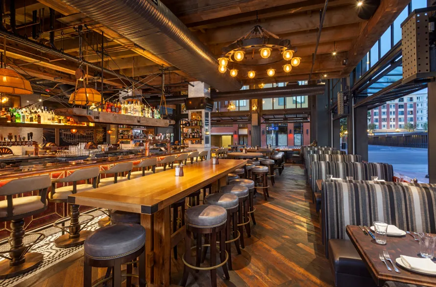 Water Grill San Diego offers a refined yet inviting atmosphere that blends nautical elegance with modern sophistication. The spacious two-story venue features high ceilings, rich wood accents, and large windows that fill the dining room with natural light during the day and a warm glow at night. Nautical-inspired decor — from subtle marine tones to polished brass details — evokes the essence of a luxury seaside experience. The open kitchen adds energy to the space, allowing guests to watch chefs artfully prepare fresh seafood, while the upstairs area and private dining room provide an intimate setting for special occasions. The overall design balances vibrancy and elegance, creating a lively yet polished dining environment.