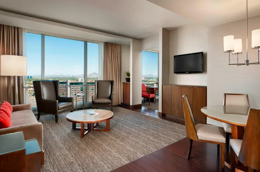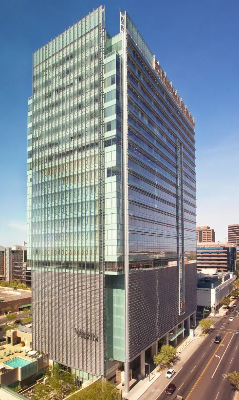 The Westin Phoenix Downtown is a modern, upscale hotel situated in the heart of downtown Phoenix, Arizona. Housed within the Freeport-McMoRan Center, a distinctive high-rise that combines office and hotel spaces, the hotel offers 242 spacious guest rooms, each averaging 540 square feet and featuring floor-to-ceiling windows with panoramic city views.