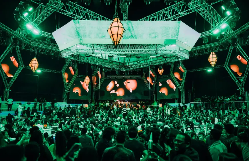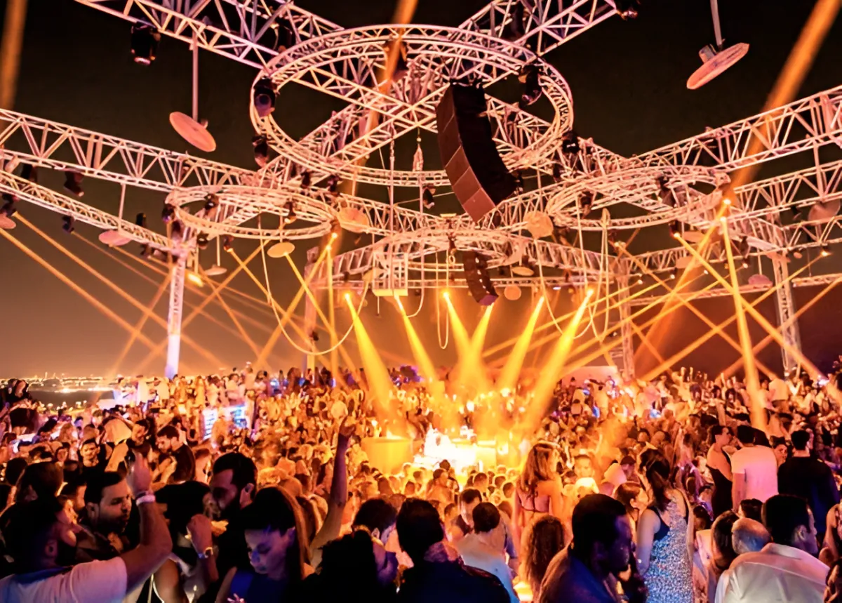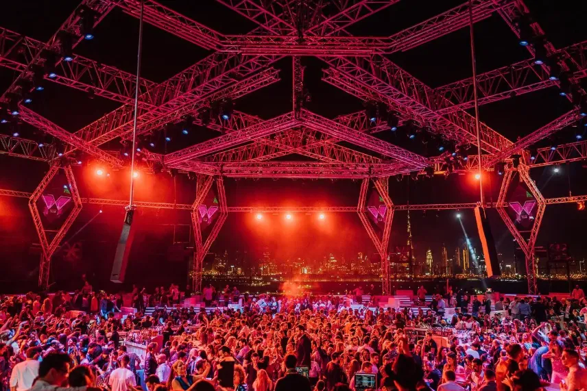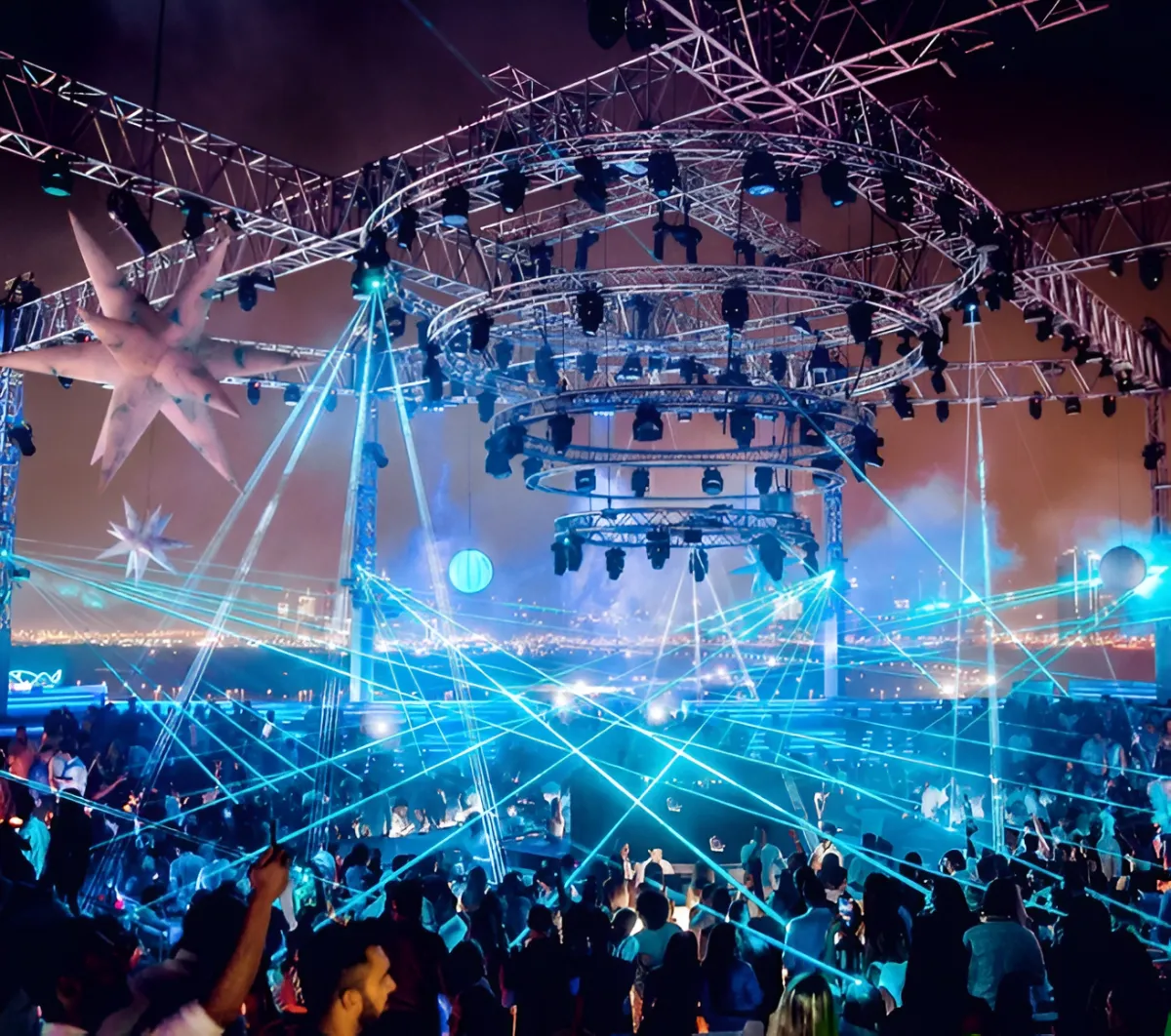 Ushuaïa Dubai Harbour Experience's design combines sleek, industrial elements with state-of-the-art lighting and sound systems, creating an immersive environment that pulses with energy. The venue features elevated VIP booths, a spacious dance floor, and multiple LED screens, all under a vast open sky. Its 360-degree views encompass landmarks like the Burj Khalifa and Burj Al Arab, enhancing the exclusive ambiance.