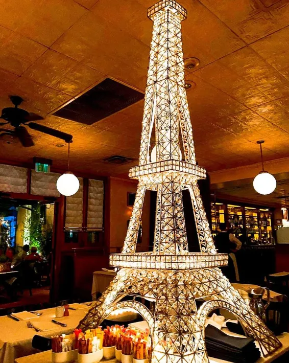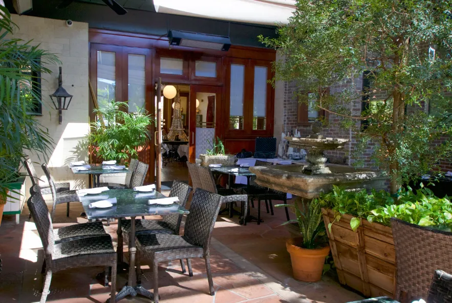 Zinc Bistro in Scottsdale offers an elegant and inviting atmosphere that transports guests to a classic Parisian setting. Designed with contemporary sensibilities, the restaurant features round marble bistro tables and wicker chairs reminiscent of the Boulevard Saint-Germain. The interior boasts a romantic garden patio, secluded deep within the restaurant, lit by candles during the evening, creating an unforgettable ambiance. Additionally, a relaxing atmosphere near the fountain is available in the afternoon. This combination of elements provides a warm and inviting environment, making it a perfect spot for a romantic dinner or a leisurely meal with friends.